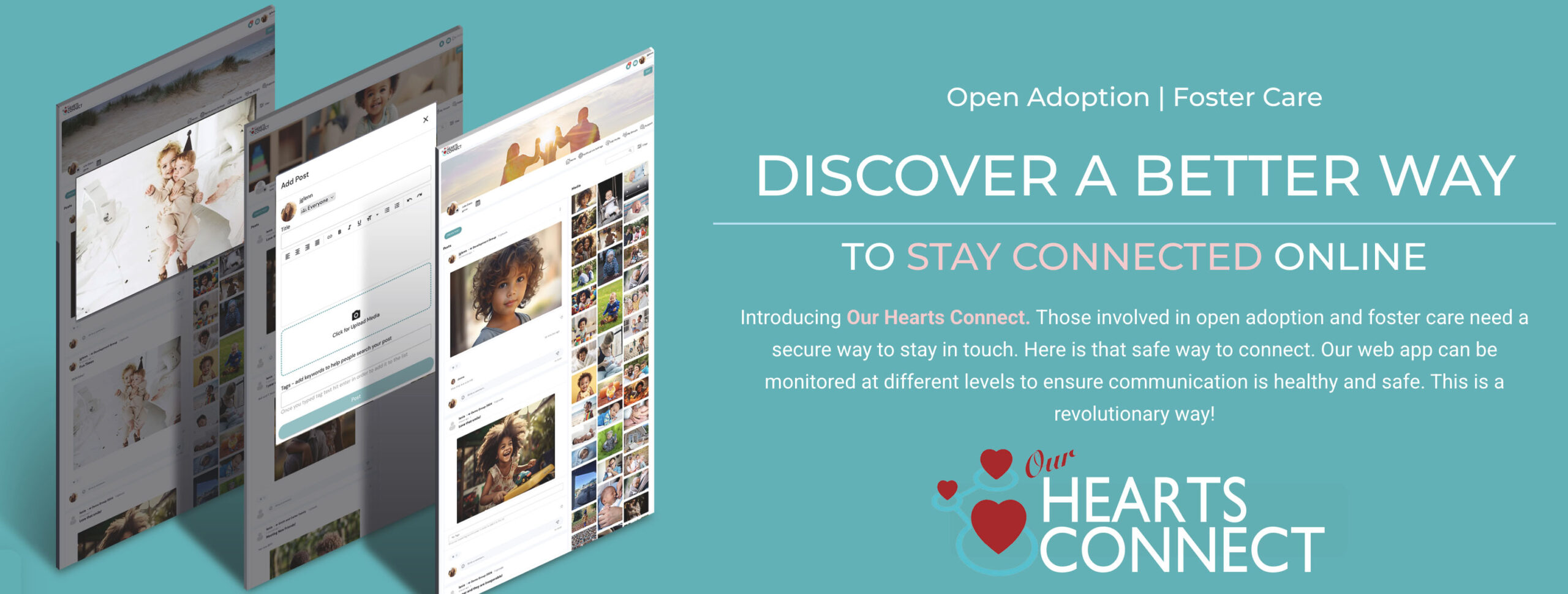 Heart to Heart offers Our Hearts Connect, a secure online space designed to support healthy, appropriate communication in open adoption relationships.
